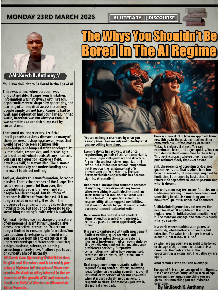 The age of AI is not just an age of intelligence. It is an age of possibility. And in such an age, boredom is no longer something you are given. It is something you are invited to overcome.